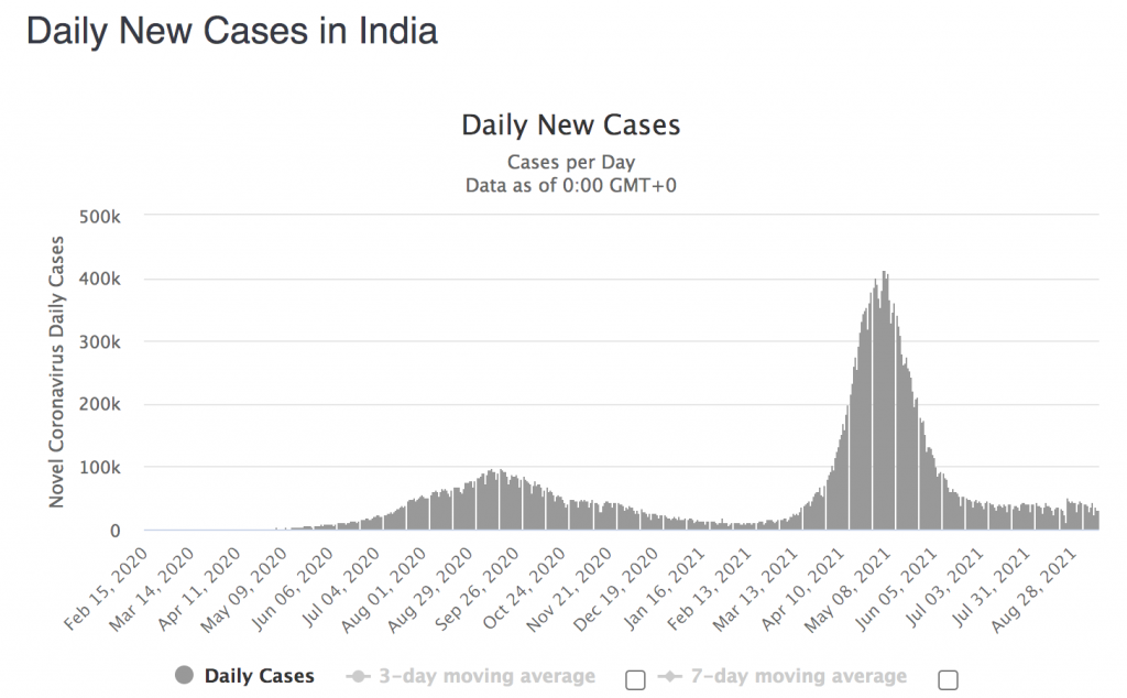 India. It was in the news with a big spike in May. Here’s a picture of that spike, from Worldometers: